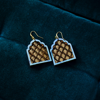 Adorn yourself in these Aqua Hanging Jāli Earrings, beautifully handcrafted inspired by Indian architectural fret-work. With an elegant hook fit for any occasion, these earrings will add a touch of sophistication to your wardrobe.